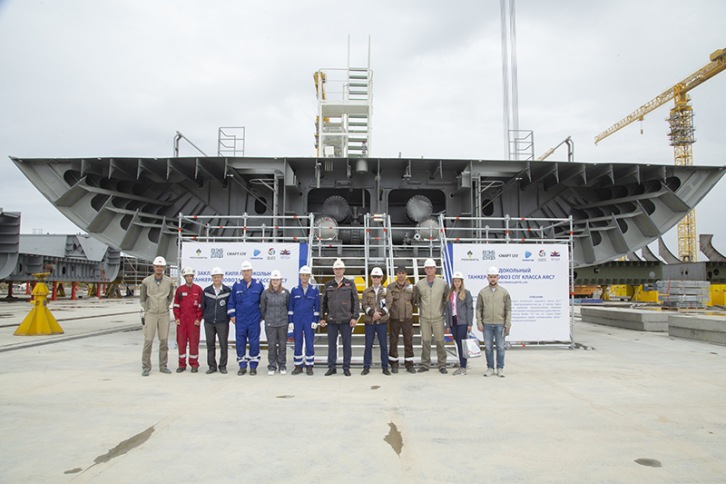 20 August 2021 Recently, a keel-laying ceremony was held at the Zvezda shipbuilding complex, in Russia's Far Eastern Primorsky Region, for the new icebreaking LNG carrier ordered by SCF Group for the Arctic LNG 2. This is the first vessel in a series of 14 new icebreaking LNG carriers ordered by SMART LNG, a joint venture between PAO Sovcomflot and PAO NOVATEK. In total, Zvezda is contracted to build 15 such carriers, with the lead vessel in the series ordered by SCF directly and the remaining sister ships ordered by SMART LNG. The vessel is scheduled for delivery in 2023. The keel has been laid in line with the contractual schedule. Vessels of the new series are designed for year-round LNG transportation in the challenging conditions of the Northern Sea Route (NSR). They are assigned the highest ice class, Arc7. Importantly, these vessels will have increased icebreaking capabilities and manoeuvrability in ice compared with the first generation of icebreaking LNG carriers (Christophe de Margerie series). The delivery of these new LNG carriers will help facilitate the growth of cargo traffic along the NSR and allow year-round navigation along its eastern part. The commissioning of the LNG carriers will allow for the expedited implementation of national plans to boost cargo traffic along the NSR and to provide year-round navigation in the eastern sector of the Arctic. The new series of gas carriers are 300 metres long, 48.8 metres wide, and will have a cargo capacity of 172,600 m3. The propulsion system includes three azimuth propulsion units, with a total capacity of 45 MW. All 15 vessels will operate under the Russian flag.