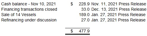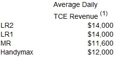 "After the scheduled sale of the vessels, we have limited debt maturities in 2022, the convertible bonds for $69.7 million, which we are preparing to pay off with cash, and one credit facility for $16.9 million, which we plan on refinancing." Fourth Quarter of 2021 Daily Time Charter Equivalent (“TCE”) Revenues Below are the estimated fourth quarter of 2021 daily TCE revenues. The amounts are subject to change as the Company has not finalized its results for the fourth quarter of 2021.