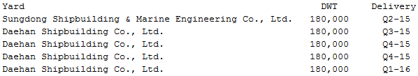 Newbuilding vessel purchases: The details of the five Capesize newbuildings are listed below: