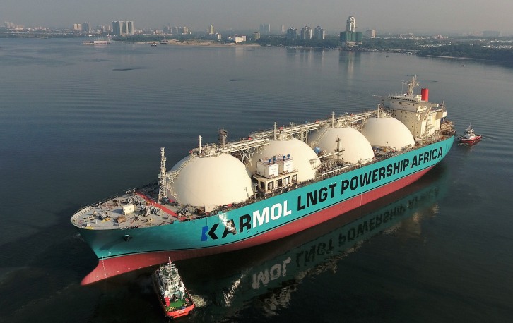 Dwiputra, renamed Karmol LNGT Powership Africa, is undergoing FSRU conversion at Sembcorp Marine. Image by Sembcorp Marine.