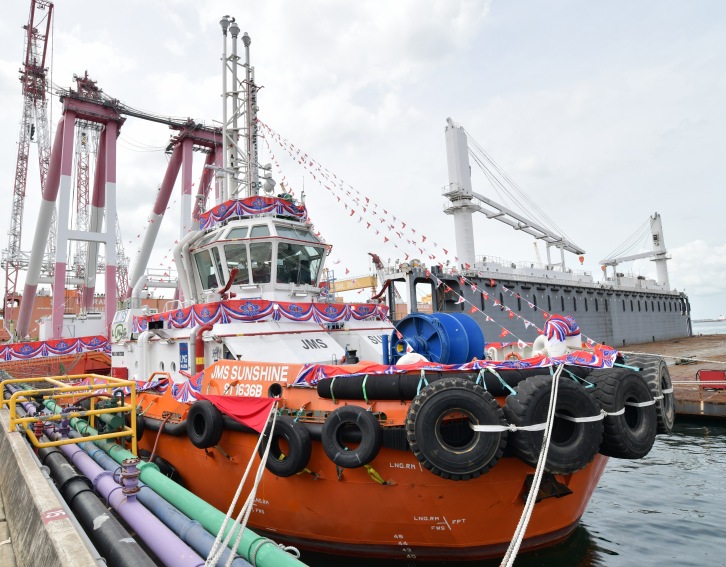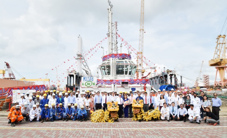 JMS Sunshine - the world's first LNG hybrid tug in Singapore waters is christened. (Photo: Sembcorp Marine, all rights reserved) The naming ceremony of JMS Sunshine further reaffirms the Group's proven track record in developing a suite of sustainable product solutions. When delivered, JMS Sunshine will be deployed in Sembcorp Marine yards for ship manoeuvring, mooring and unmooring operations. It can also be deployed by ship operators to escort vessels within Singapore port limits.