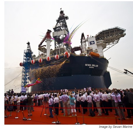 The naming ceremony of the Sevan Driller, the world's first cylinder-shaped ultra-deepwater drilling rig, took place on June, 28 2009 at Cosco Qidong Shipyard, Jiangsu Province, China.