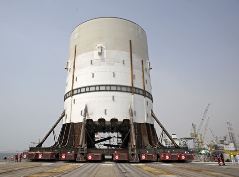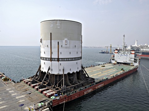 The turret is part of a mooring system designed to ensure Prelude FLNG can operate safely in the most extreme weather conditions. At almost 100 metres high, it is the largest in the world. The turret will run through the front of the facility and connect to giant chains that will keep it moored securely over the Prelude gas field. The turret mooring system will allow the facility to turn slowly in the wind and with currents – ensuring it can remain safely at its location through the most powerful cyclones. “Prelude FLNG combines our many years of experience in shipping and in managing complex LNG and offshore projects. It’s great to see our innovative designs and technologies become a reality as we reach significant project milestones like this,” Matthias Bichsel, Projects & Technology Director at Shell said. “Designed in Monaco, built in Dubai, shipped to South Korea and for use off Australia, the turret is an example of the truly global nature of this project.” Shell was the first company to commit to an FLNG project, and it expects Prelude FLNG to be the first of many such Shell facilities. Once complete, Prelude FLNG will operate in a remote basin around 200 kilometres off Australia’s north-west coast, for around 25 years. It will produce about 3.6 million tonnes of LNG a year to help meet rising global demand for cleaner energy. After the first 25-year assignment, Prelude FLNG could be refurbished and moved to a different field for another quarter century. FLNG will allow Shell to produce natural gas at sea, cool it onboard into LNG, and pump it directly into ships that will transport it to customers around the world. It can mean faster, cheaper and more flexible development of offshore gas fields that would otherwise be too costly to develop. Prelude FLNG Turret Facts and Figures • This part of the turret weighs 4,300 tonnes. • The turret’s swivel design enables the facility to ‘weather vane’ by allowing the hull of the facility to rotate according to the prevailing wind, waves or current, while the turret moorings remain fixed to the sea floor. • The turret structure has been designed to enable the FLNG facility resist the most extreme weather conditions, including category five cyclones, and the facility will remain on location in all conditions. • The mooring system includes four groups of four mooring lines, sixteen in total, that will secure the facility to anchor points about 250 metres below the surface of the sea. • The mooring lines are a combination of chains and wire. These connect the turret mooring system to the 62.5 metre long and 5.5 metre diameter anchor piles secured to the seabed. • The mooring chain links, about one metre in length and among the largest in the world, are being made in Spain. • The chain connectors that will link the Prelude FLNG substructure to its mooring lines are designed to withstand the breaking load of the largest type of offshore chains and to operate for 25 years. • The subsea connections that extract and control the flow of gas from the reservoir also connect via the turret. The turret was designed by SBM Offshore in Monaco and construction has been underway at Dubai DryDocks World since 2012. Prelude FLNG Background • Prelude FLNG is a natural gas project located approximately 475km north-north east of Broome in Western Australia. • Shell is the operator of Prelude FLNG in joint venture with INPEX (17.5%), KOGAS (10%) and OPIC (5%) and working with long-term strategic partners Technip and Samsung Heavy Industries (the Technip Samsung Consortium). • The project will be the first to use Shell’s revolutionary Floating Liquefied Natural Gas technology, which allows for natural gas to be extracted, processed, stored and transferred at sea. • FLNG removes the need for pipelines to shore, dredging and onshore works and therefore significantly limits the disturbance to the surrounding environment and reduces development costs. • Shell FLNG can be deployed in a range of field development scenarios, with high production rates and with a wide range of gas compositions. • Shell was the first to make FLNG a reality. In May 2011, Shell announced final investment decision on Prelude FLNG. • Once operating, the Prelude FLNG facility will produce 3.6 million tonnes per annum (mtpa) of LNG, 1.3 mtpa of condensate and 0.4 mtpa of LPG. • The Prelude FLNG facility will be 488 metres long and 74 meters wide. It will weigh more than 600,000 tonnes with the cargo tanks full. • The FLNG design has gone through extensive testing programs and simulations to ensure it has the ability to remain connected and moored to the sea floor throughout all weather conditions. • For more information about Prelude FLNG visit: www.shell.com/flng Shell International BV press release