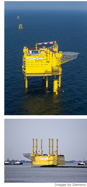 Siemens has installed the HelWin1 offshore platform in the North Sea, marking the successful completion of a significant stage in German grid connection projects. HelWin1 will link the two offshore wind farms Nordsee Ost and Meerwind to the mainland. Using the Siemens technology installed on the platform, the alternating current power generated by the wind turbines is transformed into low-loss direct current for transmission onto land. Starting next year, this will enable the network operator and purchaser TenneT to supply clean electricity to more than 500,000 German households on the mainland. The land-based station, also supplied by Siemens to TenneT, is located northwest of Hamburg in Büttel, where electricity will be converted back into the alternating current power required for feeding into the grid.