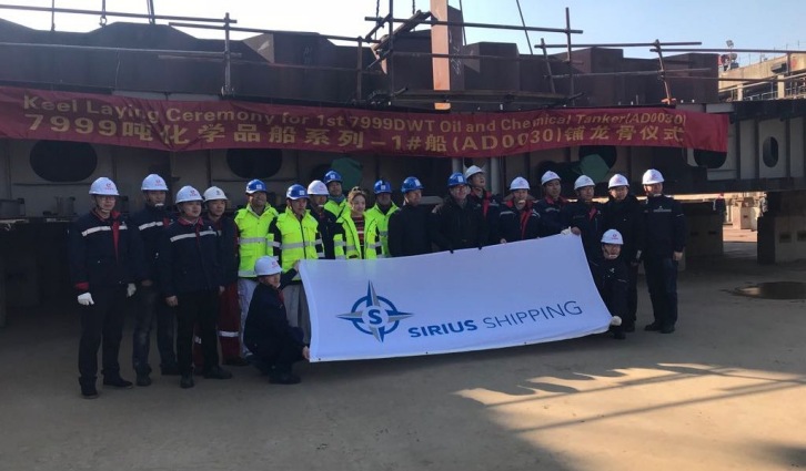 Keel laying of AD0030, the first EVOLUTION vessel. 13 February 2018 On the 1st of February in 2018, the keel was laid for Sirius Shipping’s new vessel with hull no: AD0030, this marks an other milestone for the company. The vessel is the first in the series of two newbuildings with the EVOLUTION design that has been developed to fit our customers demands, something that already have been proven. At delivery, ESSO Norway have taken this newbuilding on a time charter. We thank the organisations of both Sirius Shipping and Avic Dingheng shipyard and wish for a successful vessel and building process. Read more about the EVOLUTION series here.