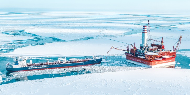 10 April 2019 On 10 April 2019, the Arctic shuttle tanker Mikhail Ulyanov loaded the milestone 10-millionth tonne of commercial oil produced at Prirazlomnaya offshore platform in the Pechora Sea. This cargo of oil has become the 150th shipped from the platform since the transportation began in April 2014. Symbolically, it was also Mikhail Ulyanov who has delivered the very first cargo of oil produced at the platform five years ago. Transportation of all oil produced at Prirazlomnaya platform is performed by Sovcomflot’s shuttle tankers Mikhail Ulyanov and Kirill Lavrov, 70,000-dwt each, which makes them the largest oil tankers built by Russian shipyards. Both vessels have been ordered by Sovcomflot at Admiralty Shipyards in St. Petersburg for the express purpose of servicing Prirazlomoye, the first offshore oil production project in the Russian Arctic. The design of these tankers reflects the challenging ice and navigation conditions common for the area of their operations. They were assigned an Arc6 ice class and are capable of independently sailing through the ice 1.2 m thick. The ability of Sovcomflot to ensure safe and reliable transportation of oil from the platform located in the Pechora Sea has become one of the key elements of successful implementation of Prirazlomoye project. Both Mikhail Ulyanov and Kirill Lavrov fly the national flag of the Russia and have St. Petersburg as their port of registry. The crews are composed entirely of Russian seafarers.
