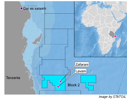Statoil operates the licence on Block 2 on behalf of Tanzania Petroleum Development Corporation (TPDC) and has a 65% working interest, with ExxonMobil Exploration and Production Tanzania Ltd. holding the remaining 35%. Statoil has been in Tanzania since 2007, when it was awarded the licence for Block 2.