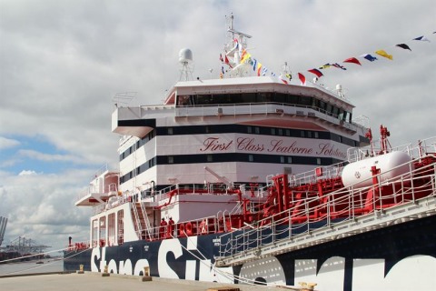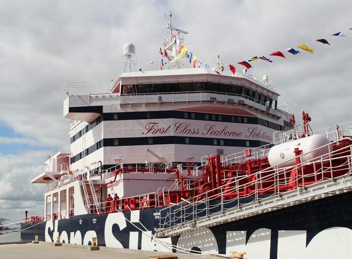 1 September 2015 Yesterday the chemical and product tanker Stena Imperial was named in Savannah, Georgia. The Stena Imperial is a 50,000 DWT MR tanker based on the IMOIIMAX concept, owned by a joint venture of which Stena Bulk and Indonesian Golden Agri Resources (GAR) each own 50 percent. The vessel is a further development of a well-established and successful concept offering high cargo flexibility and lower fuel consumtion. IMOIIMAX tankers have been designed to transport both vegetable oils, chemicals as well as clean and dirty petroleum products. Stena Imperial is the third out of ten vessels ordered by Stena Bulk for a total of USD 400 million with delivery to be completed by 2017. The vessels are operated by Stena Weco and trade within the company’s logistical systems, which now will include a fleet of some 60 tankers. Kari McCormick, wife of Doug McCormick, Commercial Regional Manager, Chevron in Houston, was godmother at the naming ceremony in Savannah yesterday. The captain of Stena Imperial is Vinay Singh. The vessel was delivered from the Chinese shipyard GSI (Guangzhou Shipbuilding International) 1 July and has now arrived in Savannah on the US East Coast with a cargo of palm oil. “We are very pleased with the performance of the IMOIIMAX tankers delivered so far. They have already fulfilled all our expectations. The configuration of several small tanks provides for considerable flexibility in regards of cargo combination, something that fits very well within our existing global logistical systems. Additionally, innovative technical solutions have, for example, resulted in lower fuel consumption and have also proved to be very effective in conjunction with discharging and tank cleaning”, says Erik Hånell, CEO of Stena Bulk. The IMOIIMAX concept has been developed by Stena Teknik together with the Chinese shipyard in Guangzhou. The tanker has 18 tanks of the same size, each with a capacity of 3,000 m3, which allows for greater cargo flexibility. A large number of innovative technical solutions have been implemented, which together, when sailing at service speed, result in 10-20% lower fuel consumption compared with other vessels of the same size. The remaining nine IMOIIMAX tankers are the Stena Impression (owned by Stena Bulk and GAR – delivered in January 2015), the Stena Image (owned by Concordia Maritime – delivered on 8 April, 2015), the Stena Important (Concordia Maritime – delivery set for autumn 2015), the Stena Imperative (Stena Bulk), the Stenaweco Impulse (Stena Weco), the Stena Imagination (Stena Bulk and GAR), the Stena Immortal (Stena Bulk and GAR), the Stena Immaculate (Stena Bulk and GAR) and the Stena Impeccable (Stena Bulk and GAR). Some of the technical solutions that will result in more energy efficient consumption and greater logistic flexibility: • Main engine auto-tuning • More efficient boiler with recovery from multiple heat sources • Recovery of propeller energy loss • Aerodynamic design of the accommodation and bridge • All cargo tanks designed to carry any type of cargo the vessel can transport • Effective tank-cleansing system Technical data for an IMOIIMAX tanker: Length: 183 metres; beam: 32 metres; deadweight: 50,000 tons With offices in six countries, Stena Bulk is one of the world’s leading tanker shipping companies. The company controls a combined fleet of around 100 tankers. Stena Bulk is part of the Stena Sphere, which has more than 20,000 employees and sales of SEK 60 billion. www.stenabulk.com Stena Bulk, press release
