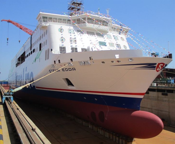 Apr 15, 2019 Leading ferry company Stena Line has achieved another major milestone in its fleet investment program with the ‘float out’ ceremony of the second vessel in its new generation E-Flexer series. The second vessel will be named Stena Edda* and follows the Scandinavian heritage decided for the five new vessels that are being constructed at the Avic Weihai Shipyard in China. Stena Edda is scheduled to enter service on the Belfast-Liverpool route in spring 2020. This is the second of three new E-Flexer vessels bound for the Irish Sea during 2020 and 2021 and represents a significant multi-million investment by Stena Line in the region. The ‘float out’ ceremony started at 13.18 hrs local Weihai time today and at 18.00 Stena Edda floated out of the dock. These timings were chosen especially because 18 is a number of good fortune in China. Stena Line CEO Niclas Mårtensson said: “It’s very exciting to follow the building process and this is another very important milestone in our rolling construction programme. This investment underscores our commitment to our operations on the Irish Sea and our determination to deliver the best possible freight and travel experience for our customers. This is a very exciting time for our business and I’m proud that as Europe’s largest ferry company, Stena Line continues help shape the industry for the next generation of freight and leisure passengers.” At 215 metres, all three vessels being built for the Irish Sea will be larger than today’s standard RoPax vessels and will provide freight capacity of 3,100 lane meters and the space to carry 120 cars and 1,000 passengers and crew. For Belfast – Liverpool capacity will increase by almost 20% compared to today. The next generation vessel is also well in line with the Stena Line strategic commitment to Sustainability and will be extremely fuel efficient to reduce emissions. They will also feature a digitally enhanced customer experience. “Stena Edda will deliver many benefits to our freight and travel customers including faster and easier loading/unloading with drive through decks and new port infrastructures. Our latest design in cabins and further enhancement of our Scandinavian inspired interiors will make these new ships the largest, most spacious and most comfortable ships ever to sail between Belfast and Liverpool,” said Paul Grant, Stena Line’s Trade Director, Irish Sea North. Stena Line is the largest ferry operator on the Irish Sea, offering the biggest fleet and the widest choice of routes between Britain and Ireland including Holyhead to Dublin, Fishguard to Rosslare, Liverpool/Heysham to Belfast and Cairnryan to Belfast, a total of 232 weekly sailings. The company also offers a direct service from Rosslare to Cherbourg with three return crossings a week.