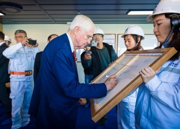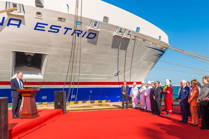 Nov 15, 2019 Stena Line has officially taken ownership of its newest ferry Stena Estrid* following a handover ceremony at the AVIC Weihai Shipyard in north-western China. Stena Estrid is the first of five next generation Stena Line RoPax vessels that are currently being constructed. Stena Estrid will now embark on a six-week journey to its new home on the Irish Sea, where it will begin service on the Dublin to Holyhead route in January 2020. A further two of the new ferries are also destined for the Irish Sea with Stena Edda expected to commence operations from Belfast to Liverpool next spring, and a third vessel Stena Embla to be introduced on the same route in early 2021. Stena Line owner Dan Sten Olsson attended a service officiated by the Reverend Stephen Miller of the Mission to Seafarers, who undertook the long held maritime tradition of blessing the ship, in order to bring it good luck at sea. Following the signing ceremony, Stena Line’s Technical Operations Director Bjarne Koitrand and Stena Estrid’s Senior Master Matthew Lynch and crew officially took ownership of the vessel. “Today has been six years in the planning,” said Bjarne Koitrand, “and we are delighted to finally take ownership of the first of our five new ships. With the new crew now in place, they can start the long journey to the Irish Sea, where Stena Estrid will make her new home serving customers between Dublin and Holyhead.” Stena Line CEO Niclas Mårtensson said that the delivery of Stena Estrid marks the start of a very important few months for Stena Line’s Irish Sea operations: “Taking ownership of Stena Estrid is a major milestone for Stena Line,” said Mr Mårtensson, “and is the result of a very significant investment in our Irish Sea operations that reflects our commitment to the region and will ultimately see three of the world’s most modern ferries operating between Ireland and Britain. “A first-class customer experience is a priority for us, so we are determined to deliver the best possible freight and travel service to our customers. Stena Estrid will provide a more environmentally sustainable way to travel with more efficient loading and unloading operations, increased freight capacity and the best Scandinavian quality, style and design in our facilities,” he added. Part of a multi-million-pound investment in the region, the new Stena Line ships will be amongst the most advanced vessels in operation and larger than today’s standard RoPax vessels. At 215 metres in length, Stena Estrid will provide freight capacity of 3,100 lane meters, meaning a 50 per cent increase in freight tonnage, and the space to carry 120 cars and 1,000 passengers and crew. *The name Estrid is connected to Stena Line’s Scandinavian heritage. It is an Old Norse eastern-Nordic version of the name Astrid. Estrid is commonly found on old runestones and means ‘divinely beautiful’.