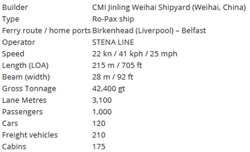 Stena Embla is due to start sailing between Britain and Ireland in the New Year Dec 01, 2020 Swedish ferry company Stena Line has officially taken ownership of its newest ferry, Stena Embla, following a handover ceremony in Weihai, China. The vessel is the third of five new next-generation E-Flexer RoPax vessels that are being constructed at the CMI Jinling Weihai Shipyard, as part of an extensive modernisation of the company's fleet. It is last of three new vessels due for the Irish Sea, which marks the end of a 7-year development programme totalling a £400m investment in new ferries and port infrastructure in the region The vessel will now embark on a six-week journey to the UK and Ireland, where it will begin service in January 2021, joining its sister vessels, the other two new E-Flexer ferries built in Weihai, Stena Estrid and Stena Embla, which started in operation in earlier this year. Due to the pandemic the handover was a lower key affair than previous vessels with Stena Embla's Senior Master Neil Whittaker, and his team, taking delivery in China. While Stena Line's CEO Niclas Martensson joined remotely from the firm's headquarters in Gothenburg, Sweden. "Today marks the end of 7 years hard work," said the company's COO Peter Arvidsson, "so we are delighted to take ownership of the third new ship on schedule. With the new crew in place they can start the long journey to the Irish Sea, where Stena Embla will begin serving customers in the UK and Ireland." Niclas Martensson said the delivery of Stena Embla marks the end of a very difficult year for the firm: "Taking ownership of Stena Embla is a major milestone for Stena Line, as we look forward to better times ahead" said Mr Martensson. "While delivery of the vessel marks the end of a very tough period for us, it also marks the completion of a very significant investment in our Irish Sea operations. It reflects our strong support for the region that will see three of the world's most modern ferries operating between Britain and Ireland. We recently celebrated the 25th anniversary of the relocation of our Northern Ireland operations to Belfast and 25 years since we commenced the Holyhead to Dublin route. Our three new ferries in the region is a sign of our strong commitment to another 25 years on the Irish Sea" he added.