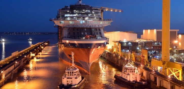 23 January 2018 Saint-Nazaire, 22nd of January 2018: the first Celebrity Edge exit – the 1st contact with water ou quelque chose d’approchant. In the late afternoon, in Saint-Nazaire, Celebrity Edge left her mounting dock, heading to the port. The future top of the range cruise ship, a RCCL order, was transferred into reverse to the Vieux Môle. A true moving time, which followed the ship floating out. After an about turn to present herself in front of the Joubert dock, this 306 meters long cruise ship got to her outfitting on the Quai de Penhoët, towed by 7 tugs. An impressive manoeuvre, 7 months after the coin ceremony, which marked the beginning of her assembly. This transfer was initially planned last week-end but was postponed on Monday the 22nd January due to bad weather conditions. The ship is due for delivery in October 2018. Celebrity Edge, the eargerly anticipated ship designed and built by STX France floats out of dry dock. Video by STX France