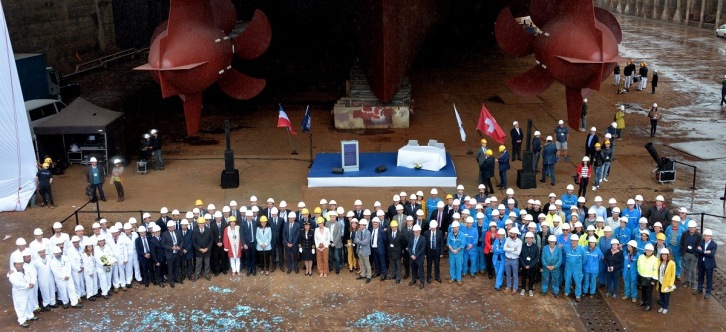15 June 2018 One year after the delivery of the first ship in the MERAVIGLIA series, the second unit, MSC Bellissima, was launched yesterday. It was during this ceremony – held in the presence of the official representatives of the MSC Cruises line and French Minister of the Economy, Bruno Le Maire – that this new order was announced. As well as this announcement, there was confirmation of the start of production of the first two units in the MSC Series World Class series – the next generation of ships deliverable from 2022. Meraviglia V, a technological breakthrough thanks to a change to gas propulsion With a design identical to MSC Grandiosa and MSC Virtuosa, (length = 331 metres, width = 43 metres, passenger cabins = 2400), this new unit sets itself apart from other ships in that it is propelled by natural gas stored in liquefied form. This technology was developed by the shipyard that was one of the pioneers at the start of this century, implementing it on LNG tankers. Other technological innovations are also planned, particularly regarding water processing, in order to meet the highest standards in terms of respect for the environment. “We are proud to be the preferred industrial partner of the MSC Cruises group, whose growth we have been supporting over the past 15 years: 13 ships have been delivered to MSC since 2003 and three are currently under construction. There is also the fifth ship in the Meraviglia series and the first two in the World Class series. These figures clearly demonstrate our client’s intensified growth plan and our commitment to supporting its ambitions,” stated Laurent Castaing, Director General of STX France.