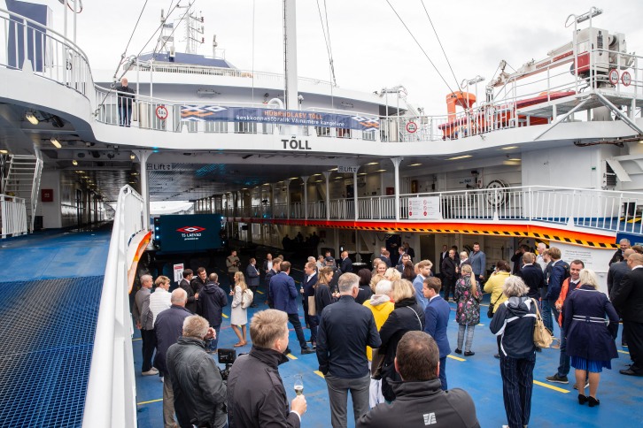 07.09.2018 Starting from September 2nd, passengers on Virtsu-Kuivastu ferry line between Muhu and mainland Estonia is served by TS Laevad, a subsidiary company of Port of Tallinn, ferry Toll which has been converted into the first hybrid passenger vessel in Estonia. Its batteries allow from now on partial travel on electricity, which reduces the amount of diesel used and minimizes air pollution. TS Laevad operates regular ferry traffic between Estonia's major islands Saaremaa and Hiiumaa and the mainland. TS Laevad shipyard includes five ferries, of which Toll, Piret and Regula operate the Virtsu-Kuivastu line and Leiger and Tiiu the Rohuküla-Heltermaa line. The batteries for the first hybrid voyage were started by the Minister of Economy and Infrastructure Mr. Taavi Aas, the chairman of the supervisory board of TS Laevad Mr. Valdo Kalm, and the chairman of the management board of TS Laevad Mr. Jaak Kaabel. The chairman of the management board of TS Laevad Jaak Kaabel noted that the retrofitting of Toll is the next step in improving the environmental friendliness of the Estonian ferry sector, to which the company has paid increased attention over the past years. "For several years now, we have been working to completely eliminate the use of fossil fuel on ferries in the Väinameri Sea area and achieve the zero-emission goal. The conversion of Toll into Estonia's first hybrid RoPax vessel is an important step towards this direction," said Jaak Kaabel, adding that if the partially battery-powered solution proves efficient and justified, other new ships of the company will follow suit. During the reconstruction works, which cost almost 1.6 million euros, TS Laevad installed batteries at Toll, which will reduce diesel consumption by 20% thus also reducing CO2 emissions by 1600 tons per year. In addition to emissions, underwater noise and vibration levels are also reduced. According to the Minister of Economy and Infrastructure Taavi Aas, the entire transportation sector is moving towards achieving the climate goals, and TS Laevad that provides for transport between the mainland and the islands, plays an important part here. "Ambitious climate targets are accelerating the transition to cleaner technologies and solutions. The first hybrid passenger vessel is a development benchmark for all ferry shipping in Estonia," Aas said. TS Laevad was the first company in Estonia to use a diesel-electric hybrid solution on a ferry that runs with frequent daily departures and manoeuvres, including in the winter months – in sub-zero temperatures. Previously, the battery technology anywhere in the world has not been used on such a large passenger ferry operating in such ice conditions in winter. The retrofitting of Toll began in 2019. The construction work was carried out by Baltic Workboats acting as a general contractor, the batteries were supplied by Corvus Energy, the electrical and automatic equipment by Norwegian Electric Systems, and the peak-shaving hybrid solution was designed by LMG Marin.