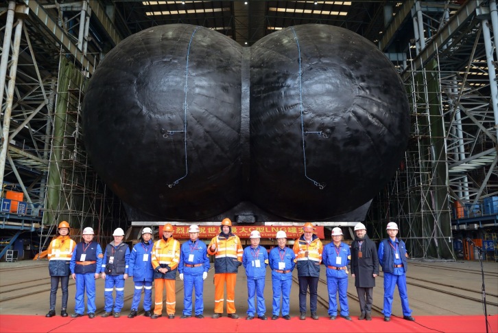 20 January 2022 TGE Marine proudly announces the completion of the tank building phase for two large LNG cargo tanks including insulation at Jiangnan Shipyard. The two Bi-Lobe shaped cargo tanks of approximately 16,000 and 14,000 m³ capacity respectively for the transportation of LNG at cryogenic temperatures are the largest LNG Bi-Lobe IMO type C tanks ever built. The tanks are designed for a maximum design pressure of 4.80 barg and a minimum design temperature of -164 °C. The applied PU spray foam insulation system results in a very low boil-off gas rate of 0.15% / day. The design of this large capacity IMO type C containment system was developed by TGE Marine and is approved by the classification society DNV. Both tanks are resting on TGE Marine’s patented special foundation design, allowing the tanks to shrink unimpeded at low operating temperatures. Furthermore, the design reduces the building and installation effort for the shipside foundation structure executed by the shipyard compared to conventional foundation structures. The tanks have already been installed into the hold spaces of the 30,000 m³ LNG Carrier newbuilding CORAL NORDIC at Jiangnan Shipyard in China for the Dutch shipping company Anthony Veder. The commissioning and gas trial activities are expected to be carried out later this year. The completion of these unique LNG tanks is based on the successful long-term co-operation between Jiangnan Shipyard and TGE Marine as well as the longstanding collaboration on common gas carrier projects between Anthony Veder and TGE Marine.