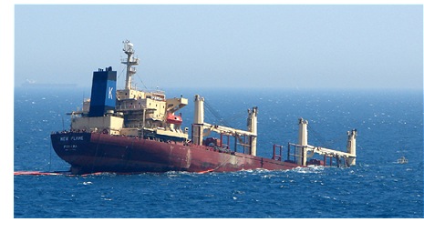 The New Flame sank following a collision while exiting the port of Gibraltar in August of last year. The remains of the wreck now lie in the open ocean off Gibraltar's Europa Point. The ship was loaded with over 42,000 tons of scrap metal, which was being transported from New York Harbor to Turkey for recycling.