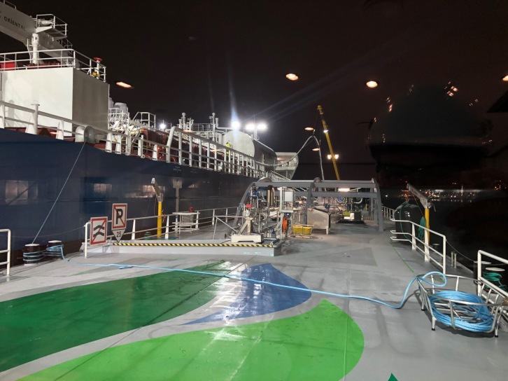 Titan LNG FlexFueler001 delivers to tanker “Fure Valo” November 20, 2019 In a joint effort between the North Sea Port and Titan LNG, the first ship-to-ship LNG bunkering in the port of Ghent took place last night. Titan LNG delivered around 150 tons of LNG to The Fure Valo, an LNG powered tanker, built in 2018 and owned by the Swedish company Furetank. Last year Titan LNG delivered LNG by truck-to-ship, as the first in the North Sea Port of Ghent. Eric de Jong, Manager Logistics Titan LNG: “This LNG bunkering marks the expansion of LNG delivery in the ports of Europe. We are very pleased with the support of North Sea Port, to fulfil our mission to make LNG available everywhere. We are proud to have safely and efficiently delivered this ship-to-ship bunkering for the first time in Ghent.” North Sea Port: “North Sea Port stimulates sustainable solutions. The transportation by water is an important element. Bunkering by barge saves several steps in the trajectory by road, therefore making ship-to-ship more efficient. Plus LNG is a cleaner fuel for shipping, that reduces emissions of CO2 and sulphur.” Titan LNG is looking forward to continue delivering LNG around the globe.