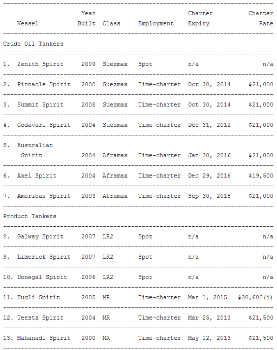 • As partial consideration, Teekay will receive $25 million in new Teekay Tankers Class A shares issued at a price of $5.60 per share. • Nine of the 13 vessels to be acquired currently operate under favorable fixed-rate time-charters. Immediately following the transaction, Teekay Tankers' fixed coverage is expected to increase from approximately 29 percent to approximately 43 percent for the 12 months commencing July 1, 2012. • Acquisition includes the assumption by Teekay Tankers of outstanding debt of approximately $180 million in term loans and approximately $290 million in available revolving credit facilities, of which approximately $40 million will be undrawn. As a result of the transaction, Teekay Tankers' liquidity is expected to increase to approximately $400 million, which the Company believes will provide flexibility to pursue further accretive growth opportunities. • Transaction is expected to be accretive to Teekay Tankers' Cash Available for Distribution(1) per share and dividend per share. • Teekay will grant Teekay Tankers a right of first refusal on any conventional tanker opportunities developed by Teekay for a period of three years from the closing date. • Additional details of the transaction will be provided by management during a conference call scheduled for Tuesday, April 17, 2012 at 9 am (ET). The table below summarizes the vessels to be acquired as well as the time-charter out contract details: