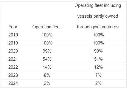 Athens, Greece - November 06, 2018 (Globe Newswire) TOP Ships Inc. (the "Company"), an international owner and operator of modern, fuel efficient "ECO" tanker vessels currently focusing on the transportation of crude oil and petroleum products, announced today that it has agreed a new time charter employment contract for 2 years with BP Shipping Ltd for its product/chemical tanker M/T Eco Revolution. The new time charter will commence in January 2019 immediately after the expiry of the present time charter employment contract. The revenue backlog expected to be generated by this fixture is about $10 million. Evangelos Pistiolis, the President, Chief Executive Officer and Director of the Company, said: "This charter is a vote of confidence in our high quality asset strategy and our high quality vessel management. Following this fixture, total gross revenue backlog for the fixed charter period of operating vessels, from June 30, 2018, stands at about $221 million, increasing to about $235 million when adding the 50% of our joint venture vessels." Following the abovementioned time charters, the Company's projected charter coverage is as follows: