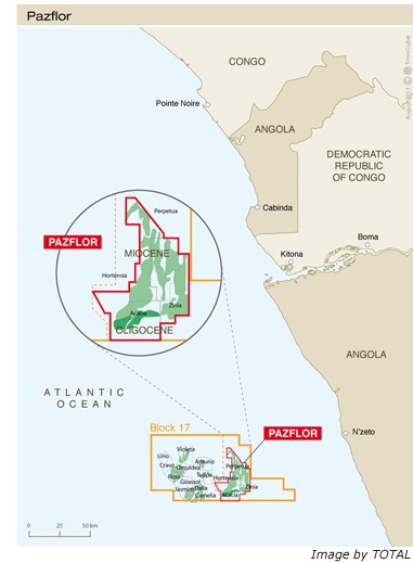 Total's main asset in Angola is deepwater Block 17, which it operates with a 40% interest. The deep offshore block contains four major hubs: Girassol-Rosa, Dalia, Pazflor, which are currently in production, and CLOV (Cravo, Lirio, Orquidea and Violeta), whose is currently under development.
