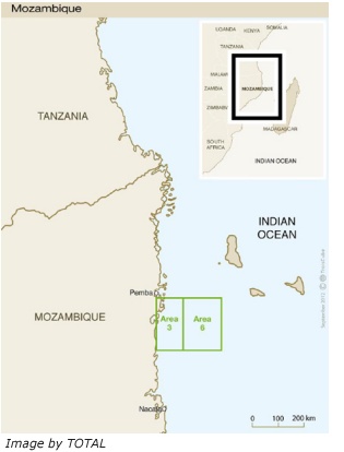 Total announces the signature of a farm-in agreement with the Malaysian state-owned company, Petronas, for the acquisition of a 40% interest in the Production Sharing Contract covering the offshore blocks area 3 and area 6 located in the prolific Rovuma Basin. Petronas will retain the operator ship. The two blocks cover an area of 15,250 square kilometers with water depths ranging up to 2,500 meters. An exploration well is planned by year-end.