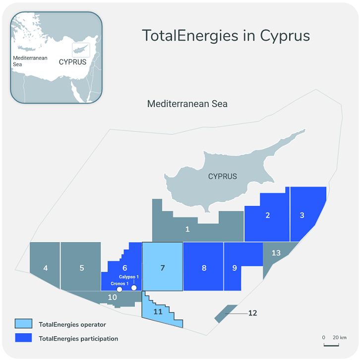 Cyprus: TotalEnergies announces significant offshore gas discovery in Block 6 Paris - August 22, 2022 TotalEnergies and Eni (operator) have made a significant gas discovery at the Cronos-1 well, in Block 6, offshore Cyprus. This discovery follows the Calypso-1 discovery made on the same Block in 2018. Located at approximately 160 km southwest of the Cyprus coast, Cronos-1 encountered several good quality carbonate reservoir intervals and confirmed overall net gas pay of more than 260 meters. "This successful exploration well at Cronos-1 is another illustration of the impact of our Exploration strategy which is focused on discovering resources with low technical cost and low carbon emissions, to contribute to energy security including to provide an additional sources of gas supply to Europe" said Kevin McLachlan, Senior Vice President, Exploration at TotalEnergies. The drilling of another exploration well on Block 6 is planned, in order to investigate significant additional resource upside and to evaluate the best development options. TotalEnergies holds a 50% interest in Block 6, where Eni is the operator (50%). In Cyprus, TotalEnergies is also present in offshore Block 11 (50%, operator), 7 (50%, operator), 2 (20%), 3 (30%), 8 (40%) and 9 (20%).