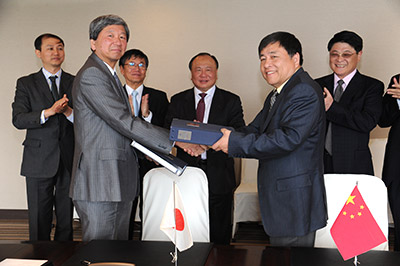 The four ordered vessels feature the latest improvements in fuel efficiency, made in 2013 in compliance with new international regulations. Reductions in both fuel consumption and nitrogen compounds contained in gas emissions are achieved by applying an engine in which fuel injection is controlled electronically rather than by the conventional mechanical method. Fuel efficiency is further improved by a proprietary propeller design with that the main engine’s output can be more efficiently converted to propulsive force. In addition, it features accommodation design in compliance with stricter regulations regarding on-board ship noise that were issued by the International Maritime Organization for chartered vessels contracted from July 2014, and there are also other improvements in the crew’s working environment. As with previous models, the accommodation is at the stern end of the ship, entirely behind the on-deck container loading space, which helps to make cargo handling operations more efficient and less time-consuming. These four newly ordered vessels will be operated by Shanghai Haihua Shipping Co., Ltd. (HASCO), a member of the SIPG Group. HASCO is a state-owned shipping company that handles regular container transport on shipping routes between China and Japan and between China and Southeast Asia. On April 11, representatives from both of these companies were in Japan for a contract signing ceremony held at Tsuneishi Shipbuilding’s main shipyard in Numakuma-cho Fukuyama city, Hiroshima. After signing the contract, ship owner representative SIPG’s Vice President Huang Xin and Hong Kong-based subsidiary’s General Manager Gu Jianmin remarked “the high energy-saving performance of this ship model not only cuts operational costs for our maritime business, it is certain to contribute to environmental protection as well. In view of the TZS’s latest shipbuilding equipment and processes and their quality control system, we feel that everyone is enthusiastic about building the vessels. And we are looking forward to their completion.”