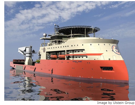 “We look forward to adding these vessels to our fleet. The cooperation between our companies is excellent and we look forward to working with ULSTEIN on the construction of these multifunctional vessels,” says CEO Gary Chouest, Edison Chouest Offshore. Island Offshore’s current fleet includes four vessels from ULSTEIN. In addition, a construction vessel for Island Ventures II LLC is currently under construction at Ulstein Verft for delivery in June 2014. Facts about the vessels The newly developed SX165 design has many qualities. The vessel is 28 metres wide and 145.7 metres long and can accommodate 200 people. She is equipped with two cranes that can lift 400 tons and 140 tons, respectively. She has a large moon pool measuring 11.2 by 12 metres plus two smaller moon pools with ROVs installed in a centrally located hangar. The vessel has a total of three separate engine rooms to provide extreme operational reliability: if a major error occurs and one of the engine rooms goes out of service, the ship will still have two-thirds of her operational capacity. Health, safety and the environment have been fully considered in the development of this design. For example, the vessel will be delivered in accordance with the international regulation MLC2006 that sets out the comfort and safety requirements for the crew. The ship has four lifeboats, two on each side. In addition, the vessel is equipped with SCR catalyst system for NOx emission reduction. Company facts Island Offshore is headquartered in Ulsteinvik, Norway. Established in 2004, its fleet includes close to 30 advanced offshore service vessels. Edison Chouest Offshore is based in the U.S and is a major offshore company, owning five yards in the U.S. and Brazil. Its fleet numbers more than 200 vessels, including subsea/construction vessel, anchor handling tug supply vessels and platform supply vessels. Ulstein Group is an internationally renowned provider of ship design, shipbuilding and system solutions for ships. The company offers design packages and solutions for offshore support and heavy offshore vessels. The family-owned group is headquartered in Ulsteinvik, Norway, and has activities in seven countries. Ulstein Group develops innovative solutions in close cooperation with customers worldwide. One example is the X-BOW® hull line design. Vocabulary: Moon pool: An opening of the hull, giving access to the water below. Through the opening, tools and instruments can be lifted and lowered into the sea. ROV: Remotely operated vehicle. An underwater robot linked to the vessel by an umbilical cable, which can observe and send data, film, photos and signals from the sea bed. Thruster: A type of propeller used for propulsion or manoeuvring. SCR catalyst system: Selective Catalytic Reduction Ulstein Group press release |