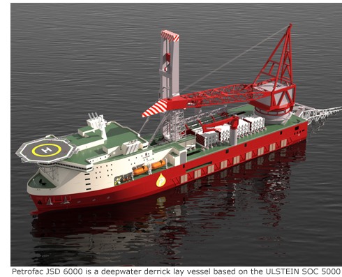 Sharjah based Petrofac is to build the Petrofac JSD 6000 deepwater derrick lay vessel, a customised ULSTEIN SOC 5000 developed by Dutch design company Ulstein Sea of Solutions. The vessel will be constructed at the ZPMC yard in China and be available for construction and installation activities in early 2017.