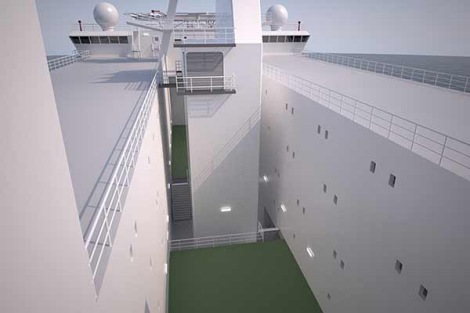 Keen consideration has been given to CAPEX, OPEX and technical aspects like safety, high performance station keeping, crew comfort and logistics on board. The result has been a commercially very attractive vessel for the owner, which is confirmed by received yard quotations, and which should make it the most competitive vessel in the market once the first vessel is delivered in Q4 2016. ‘Developing the CASCO Enabler jointly with CASCO Offshore in a very open and constructive dialogue, has resulted in a unique, unrivalled design for this market segment’, says Bram Lambregts, Marketing & Sales Manager at USOS. Drawing on many years of experience in the accommodation sector, the vessel has been designed to provide a natural flow for personnel from their work to home environments, and for the most efficient logistics with respect to services and supplies. The vessel is unique by having isolated, separated areas for accommodation, common areas and work areas. It features an internal atrium providing for daylight in almost all of the cabins, and will have European standard fit out in all accommodation areas. Comfort for all personnel on board is further increased by having a free standing funnel stack completely physically removed from the accommodation, hence avoiding structurally induced noise. These are all unique comfort features, and the vessel meets DNV Comfort Class notation. The vessel will be equipped with a telescopic gangway to facilitate safe and comfortable personnel transfer to platforms. An offshore crane with a lifting capacity of 50t @ 16m is located at SB aft quarter. The crane foundation and integration in the vessel hull has already been prepared for future upgrade to up to a 500 tons crane, including space allocation in the vessel lay-out for an anti-heeling system. The vessel also features a fire-fighting system equivalent to FiFi 1 class. Main dimensions of the vessel are: Loa: (length over all) 144.6 m Lpp (length between perpendiculars) 138.8 m Beam (moulded) 33.0 m Depth (main deck) 18.9 m Operating draught 7.0 m Service speed 12 kn Installed power 6 x 4,750 kW Positioning DP3 Class DNV Complement 800 persons Ulstein Group press release |