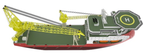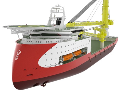 5 May 2015 Ulstein introduces the HX103 and HX104 designs, DP3 vessels with heavy-lift capability and large outreach combined with a large open deck space and accommodation for 350 and 500 people. Cost efficient design with higher operational value: With the introduction of the ULSTEIN HX103 and HX104 heavy lift vessel designs, ULSTEIN paves the way for the next generation, cost efficient offshore assets to meet today’s and tomorrow’s market demand. A dedicated feature on the DP3 designed vessels is the heavy-lift capability with large outreach combined with a large open deck space and accommodation for 350 and 500 people on board. The fully SPS compliant designs also mark the entry of the successful ULSTEIN X-BOW® in this segment of the construction market. In the last decade the offshore industry has become a truly global industry with an ever stronger focus on safety, operability and crew comfort. Combined with the recent downturn in oil prices and related cost reductions, the traditional low CAPEX heavy lift units are not the most efficient assets for worldwide operations. With the new ULSTEIN HX heavy lift vessel designs, Ulstein has paid significant attention to combine good DP capabilities with relatively small installed power and smart DP lay-out, reducing the vessel’s overall environmental footprint. Therefore, ULSTEIN offers an attractive and modern vessel alternative for the maintenance markets in a.o. the Gulf of Mexico, Brazil and West Africa. Optimised for DP2 capability, the HX103 design includes a main crane of 1,000 tonnes @ 26m outreach revolving and 320 tonnes @ 68m, as well as a deck crane of 50 tonnes @ 24m outreach. Its “big brother”, the ULSTEIN HX104 design, has a heavy-lift capability of 2,000 tonnes @ 30 m radius and 685 tonnes @ 74 m outreach. The heavy lift vessel designs are officially introduced at the OTC in Houston, but first discussions with potential clients indicated a clear interest in the designs. ULSTEIN HX103 design Main dimensions: Loa 146.0 m Lpp 140.2 m Beam (moulded) 32.0 m Depth 11.2 m Draught (design) 7.0 m Service speed 12 kn Installed power 6 x 2,800 kW Positioning DP3 Complement 350 persons ULSTEIN HX104 design Main dimensions: HX104 Loa 174.0 m Lpp 167.0 m Beam (moulded) 36.0 m Depth 11.2 m Draught (design) 7.0 m Service speed 13 kn Installed power 6 x 3,300 kW Positioning DP3 Complement 500 persons Ulstein Group press release |