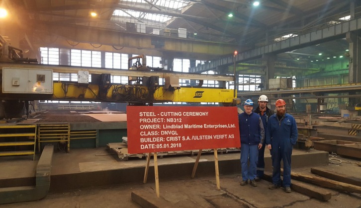 05 January 2018 The steel cutting ceremony of the first polar new build in the Lindblad Expeditions-National Geographic fleet was carried out on Friday morning, 5 January 2018. The vessel, yard number 312 at Ulstein Verft, will be ready for her first expeditions in 2020. The cutting of the first steel marks the production start for a newbuild vessel project. The steel cutting ceremony was supervised by Janusz Stechly at DNV-GL and yard representatives Ole Osnes Gjerde and Marek Lewczuk. The expedition cruise ship is designed by Ulstein Design & Solutions AS with a focus on safety and comfort. A core feature is the patented X-BOW®, which provides improved comfort for passengers in rough weather. Expanded fuel and water tanks provide for extended operations in remote areas. Lindblad Expeditions Holdings, Inc. is an expedition travel company that works in partnership with National Geographic to inspire people to explore and care about the planet. The partnership’s educationally oriented voyages allow guests to interact with and learn from leading scientists, naturalists and researchers while discovering stunning natural environments, above and below the sea.