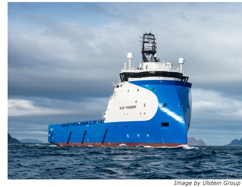 Owned by Blue Ship Invest, a wholly-owned company in Ulstein Group, the platform supply vessel (PSV) is commercially and technically under the management of Atlantic Offshore. ‘Blue Thunder’ will enter a 4-month contract with Statoil, with 4 monthly options.