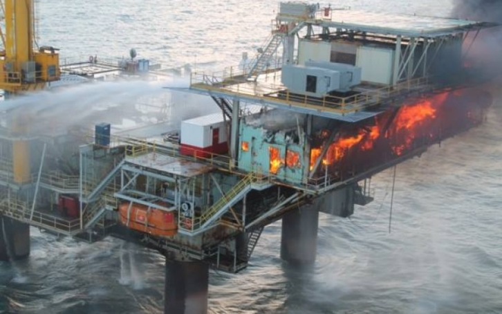 Coast Guard provides overflight of Baker platform fire near Kenai, Alaska