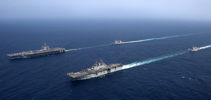 By Mass Communication Specialist Seaman Catie Coyle, Abraham Lincoln Carrier Strike Group Public Affairs Arabian Sea - 19 May 2019 The Abraham Lincoln Carrier Strike Group (ABECSG) and the Kearsarge Amphibious Ready Group (KSGARG), with the embarked 22nd Marine Expeditionary Unit (MEU), conducted joint operations May 17-18. After the ABECSG deployed to the region in response to credible threat indicators, the operations highlight the ability of the U.S. Navy to quickly mobilize assets and aggregate different platforms with a variety of operational capabilities. “The exercises and training we are doing with Amphibious Squadron Six, the 22nd Marine Expeditionary Unit and USS Kearsarge are aimed towards increasing our lethality and agility to respond to threats, and deterring destabilizing actions in this important region,” said Rear Adm. John Wade, commander, Carrier Strike Group 12. During the exercises, ABECSG and KSGARG conducted numerous joint training evolutions designed to improve operational tactics in several warfare areas. Exercises included air-to-air training, steaming in formation and maneuvering, and establishing joint communications to rapidly enable a command and control environment. Super Hornets from Carrier Air Wing (CVW) 7, embarked on the Nimitz-class aircraft carrier USS Abraham Lincoln (CVN 72), conducted a dissimilar air combat training (DACT) exercise with AV-8B Harriers embarked on the Wasp-class amphibious assault ship USS Kearsarge (LHD 3). With the Super Hornets simulating opposing forces, the Harriers were allowed a rare chance to train with a capable and stealthy adversary. “I’d never had a chance to train with Harriers before,” said Lt. Cmdr. Michael Scott, a pilot with CVW 7 operations who led the DACT. “We also had the Harriers receive gas from our airborne F/A-18 mission tanker - something that rarely happens. It was pretty neat to see the Harrier up close in the air.” Additionally, Super Hornets from CVW 7 and Harriers and attack helicopters from the Kearsarge conducted a joint close air support (CAS) exercise. The CAS provided a unique training opportunity as it combined multiple types of tactical aircraft that do not typically operate together. The training featured extensive coordination with the U.S. Marine Corps, the Navy’s natural partner at sea, at a time when Department of the Navy leadership has increasingly emphasized Joint Forces integration and interoperability. During the training, the Maritime Raid Force of the 22nd MEU conducted visit, board, search and seizure (VBSS) training, as well as a fast-roping exercise with helicopters and the Arleigh Burke-class guided missile destroyer USS Bainbridge (DDG 96). CH-53E Super Stallion helicopters, embarked on Kearsarge with the 22nd MEU, completed deck landing qualifications (DLQs) on Abraham Lincoln and Bainbridge. MV-22 Ospreys, also with MEU 22, also had an opportunity to land on the flight deck of Abraham Lincoln. The pilots gained valuable training landing aboard ships they otherwise would not deploy with, ultimately increasing interoperability and the skillsets for pilots to seamlessly transition platforms if necessary. “This tactical fluency across platforms allows us to efficiently traverse any waters uncontested and readily employ our military assets anywhere, at any time, as demonstrated through this interoperability between Kearsarge and the carrier strike group,” said Capt. Jason Rimmer, commanding officer of Kearsarge. The joint operations between ABECSG and KSGARG are a demonstration of the steadfast commitment of the Navy to protect the United States, deter conflict and preserve strategic interests around the world. The ABECSG and KSGARG, with the 22nd MEU, are prepared to respond to contingencies and to defend U.S. forces and interests in the region. With Abraham Lincoln as the flagship, deployed ABECSG assets include staffs, ships and aircraft of Carrier Strike Group 12 (CSG 12), Destroyer Squadron 2 (DESRON 2), USS Leyte Gulf (CG 55) and Carrier Air Wing 7 (CVW 7). The Wasp-class amphibious assault ship USS Kearsarge is the flagship for the Kearsarge Amphibious Ready Group and, with the embarked 22nd Marine Expeditionary Unit (MEU), is deployed to the U.S. 5th Fleet area of operations in support of naval operations to ensure maritime stability and security in the Central Region, connecting the Mediterranean and the Pacific through the western Indian Ocean and three strategic choke points.