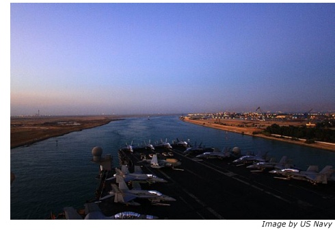 The transit marks the beginning of the last leg of the carrier's historic 25th and final deployment, after seven months of operations at sea. The Suez Canal is a 120-mile long, 79-foot-deep canal that runs through Egypt's Sinai Peninsula, allowing mariners to transit from the Red Sea to the Mediterranean Sea, and vice versa. Because the canal is so shallow and narrow, the transit puts the skills of even the most seasoned helmsman to the test, as the canal was not originally designed to accommodate ships the size of an aircraft carrier. In fact, the evolution usually takes anywhere from 14-20 hours to complete. "Planning for this type of evolution starts months out to try to minimize any hiccups," said Chief Quartermaster Craig J. Bowman. "We (Navigation department) lay out the ship's planned track with proposed or planned times to be at certain places. Other departments on the ship take the information we provide and plan when and where they can or can't do evolutions - or when they need to shut off or stop certain services." Because Enterprise was the first to make the historic journey through the Suez Canal, those involved in its current transit believe that there is a bit of reverence in having the honor to take the "Big E" through "the Ditch" for the final time. "To bring Enterprise through the Suez Canal for the last time is certainly an honor," said Cmdr. Donald Kennedy, Enterprise's navigator. "For more than 50 years, Big E Sailors have expertly stood the long watches required to navigate Enterprise safely. To be among the last to see her through the Suez Canal will no doubt be one of the most memorable experiences of my career." Many "Big E" crewmembers agree that it is an honor to be involved with the final cruise and Suez Canal transit of the world's first nuclear-powered aircraft carrier. The cruise marks a milestone in not only their careers, but their lives as well. "Being involved in the planning of the transit is something that no one can take away from me or anyone else on the Navigation team," said Bowman. "I went through as a QM1 (quartermaster first class) and I am coming out as a QMC (chief quartermaster). Just adding that to the transit makes this that much more memorable for me." Enterprise is scheduled to return to its homeport of Norfolk at the end of its current deployment to begin its inactivation process after 51 years of service. Source: www.navy.mil |