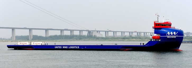 First of two state-of-the-art Deck Carriers, MV BoldWind, has been delivered to United Wind Logistics Hamburg - 11 May 2020 The first of two state-of-the-art Deck Carriers, MV BoldWind has been delivered to United Wind Logistics, the second vessel is to follow later within the year. MV BoldWind will start her maiden voyage towards Europe, where she will be employed in a long-term charter in the offshore Wind industry. On her maiden voyage, the vessel will carry windmill blades from China to Norway. With a deadweight of 10.000 mtons, a deck length of 128 m and width of 28 m, the modern Deck Carrier offers great flexibility and attractive intake for any huge or heavy cargo. The modern vessel combines an optimized hull design and diesel electric propulsion to suit its dedicated service field. The electric package is supplied by ABB and powered by four MAN diesel generators driven by high quality MDO. Additionally, the MAN engines meet IMO Tier III emission regulations being equipped with a Selective Catalytic Reduction system. “We are proud to affirm our company’s aspirations to take over as front-runners for an eco-friendly shipping industry. We are already looking forward to receiving the sister newbuilding MV BraveWind in four months from now.” says Mr. Puschmann, managing director of UWL. Newbuilding Deck Carrier MV BoldWind delivered to United Wind Logistics in May 2020 from Mira-Kristin Rolke on Vimeo.
