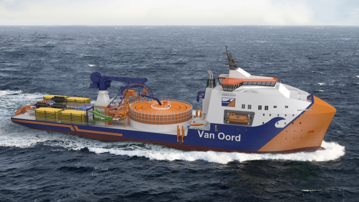 This new vessel is Van Oord's second cable-laying vessel in addition to the Nexus. Its intelligent cable lay control system will be a further evolution from Nexus. It measures 130 metres in length and 28 metres across the beam and will be Dutch flagged. Van Oord press release
