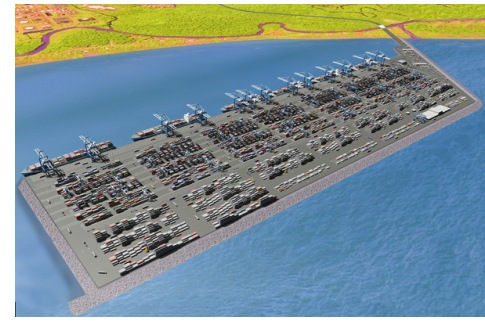 The consortium will be responsible for the construction of the new terminal and marine access. The scope of work for Van Oord consists of the construction of a 1.5-km rock breakwater, reclamation of an area of 40 hectares, including soil improvement works, and the dredging of the access channel and turning basin. Van Oord will deploy a trailing suction hopper dredger, a cutter suction dredger and rock installation equipment. BAM International will construct the 650-metre quay wall, as well as the pavement, associated buildings and all utilities.