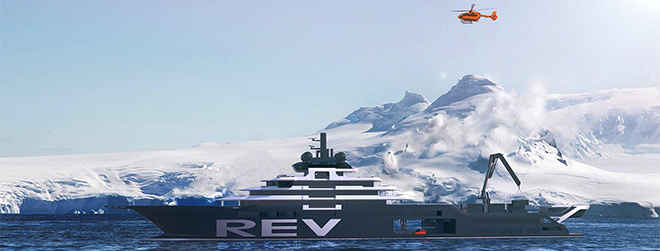 2 May 2017 VARD is pleased to announce a contract for the design and construction of one Research Expedition Vessel for Rosellinis Four-10. Rosellinis Four-10 is wholly-owned by the Norwegian industrialist Kjell Inge Røkke and his family. Developed by Vard Design in collaboration with the customer and the designer Espen Øino, the Research Expedition Vessel (REV) is expected to enter service in 2020. The hull will be built at Vard Tulcea in Romania, and towed to Vard Brattvaag in Norway for outfitting. After delivery in Norway, the vessel will return to Romania for fairing, deck laying and finalization of the accommodation area. The highly specialized vessel is tailor-made for worldwide research and expedition activities, with the objective of developing knowledge and sustainable solutions to address the ocean’s environmental challenges. WWF Norway is invited by the shipowner to take part in the further development of the research and expedition project. Equipped with the latest technology on board, the vessel will be one of the most advanced research expedition vessels in the world. Equipment for monitoring and surveying marine areas, currents, the seabed, fish, animals and plant life in all of the world’s oceans will be available on the vessel. Environmental performance has been crucial throughout the concept- and development phase. The VARD 6 16 design is developed for navigating waters in the most challenging and vulnerable environments, from arctic to tropical areas. To secure the most cost efficient, silent, comfortable and environmentally friendly expeditions in all weather conditions, the vessel is designed with slim hull lines in combination with wave-cutting bulb, slender foreship, large propellers and two pairs of stabilization fins. Other key features are the energy recovery rudder system, medium speed engines, a direct drive diesel-electric propulsion system with battery package, and an exhaust cleaning system. The vessel will also employ VARD’S SeaQ Green Pilot, a data driven maritime energy management and operational performance system. By using real-time measurements, mathematical models and analysis of the vessel's performance, an expert system will give the operator advice on the ship’s performance and fuel consumption. This will empower the crew to minimize the carbon footprint of the vessel. SeaQ Green Pilot was developed by Vard Electro in Norway. With its length of 182 meters, the vessel will be the longest one ever designed and built by VARD. The research and expedition area features modern laboratories, an auditorium, a hangar for a Remote Operated Vehicle (ROV) and an Autonomous Underwater Vehicle (AUV) with direct access to the vessel’s moonpool, and a multifunctional cargo deck.