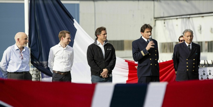 From left: General Manager Business Unit Cruise in VARD Attilio Dapelo, Yard Director Vard Søviknes Arnt Inge Gjerde, New Building Director in PONANT Mathieu PETITEAU, Captain Patrick MARCHESSEAU, and Captain Etienne GARCIA. Image by VARD. VARD - press release