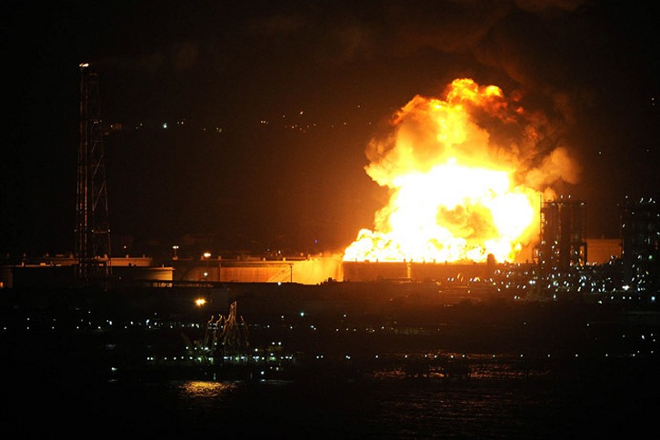 The fire sent hundreds of panicked residents fleeing the area, fearing the fire could spread to residential buildings. The fire was reportedly seen miles away.