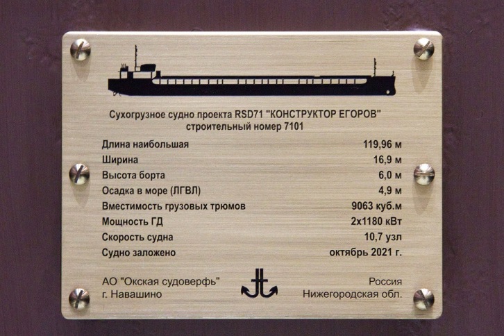 RSD71 is a new domestically developed design of sea-and-river going ships. The project will be first implemented in the Nizhny Novgorod Region, by Okskaya Shipyard. Ordered by Volga Shipping Company, Project RSD71 was designed together with Marine Engineering Bureau LLC specially for the cargo base of the shipping company. The series of four dry cargo carriers is to be completed in 2023: two units will be delivered in 2022 with the delivery of two more vessels scheduled for 2023. "We need at least 20 ships of that design. Project RSD71 is in high demand and it properly fits our cargo base, - said Yuri Gilts, General Director of Volga Shipping Company JSC. - That will be our flagship which will replace the aging dry cargo fleet. The new ship will feature higher universality as compared with ships of Volgo-Don Max class. Its dimensions will let us deal efficiently with unique project cargoes in fast-growing segments of the market. We are proud to have the lead ship named after Gennady Yegorov, national shipbuilding ideologist, with whom Volga Shipping Company implemented numerous joint projects. That design was developed through our joint efforts and long discussions." The keel-laying ceremony was attended by Aleksandr Yegorov, General Director of Marine Engineering Bureau LLC, who thanked Volga Shipping Company for the proposal to name the new ship after his father. "RSD71 is the last project developed by Gennady Yegorov. The today's event is certainly very significant for MEB and the entire industry. The new design has some specific features - with a length of only 120 meters it has the longest hold (83.5 meters) among the ships of its class and lets pursue a concept of utmost transportation of heavy cargo. Hopefully, the new dry cargo ship will carry the philosophy we implied together with the customer". The key advantage of RSD71 ships is their universality which guarantees efficient operation in the sea with a deadweight of 7,170 tonnes and on inland routes with a deadweight of 4,380 tonnes. The new design meets all the recent environmental standards including compliance with Tier III to reduce NOx emissions. It also includes the most advanced systems of automation and assistance to navigation. Modernization of its dry cargo fleet will let Volga Shipping Company retain and strengthen its position in transportation of export cargo within the market's most fast-growing segments.