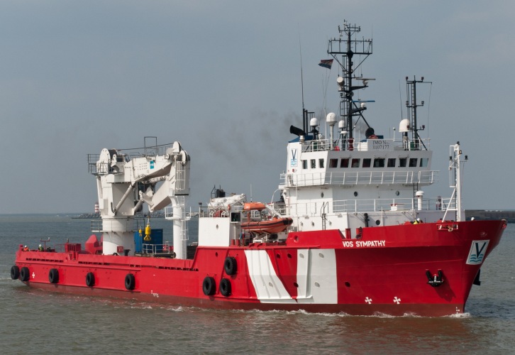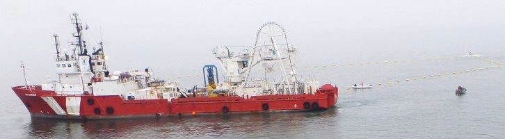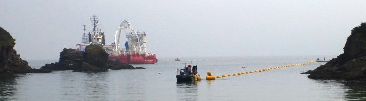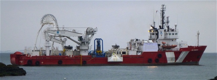 18 March 2015 We are proud to announce that VOS Sympathy this week completed an exciting project for our trusted client, LD TravOcean. VOS Sympathy, a subsea-support vessel operated by Vroon Offshore Services Den Helder, has spent the last few weeks laying a power cable between Quiberon and Belle-Ile in Brittany. The power cable, from the French mainland to the island Belle-Ile, will be connected to the main electrical grid and provide additional power capacity to the island. The project lasted three weeks, with transit, cable loading and mobilisation of the lay spread on board the vessel being the most time-consuming tasks. The actual laying of the cable, which took place from the vessel’s starboard side, only lasted three days, partly due to the favourable weather conditions. With the assistance of small workboats, the cable was transferred from the vessel to shore. In shallow areas, the cable was pulled into the vessel from the shore. At the start of the project, the ferry service to the island had to be suspended for a few hours while VOS Sympathy started her operations, since transit spread during laying is obviously very slow (about 300 metres / hour). For the vessel’s crew it was a chance to make optimum use of the modern DP system, operating in “track-follow” mode. We would like to thank our clients for the assignment and for their support throughout the exercise. We would also like to express our appreciation to all crew members for a job well done. The combined knowledge and skills of LD Travocean and VOS have resulted in the successful and timely completion of this interesting and unique project. Whenever on Belle-Ile for a holiday and making full use of the air-conditioning system in our hotel room, we will be pleased to remember that we assisted in laying the cable to make this possible! Vessel particulars of VOS Sympathy