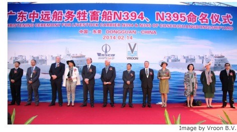 As well as celebrating the naming of both these vessels, we are also delighted to confirm the order of two additional livestock carriers at Cosco Guangdong. These newbuilding vessels, the fifth and sixth in the series, are scheduled for delivery in the second half of 2015 and we look forward to continuing our cooperation with Cosco Shipyard.