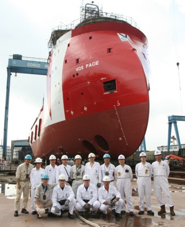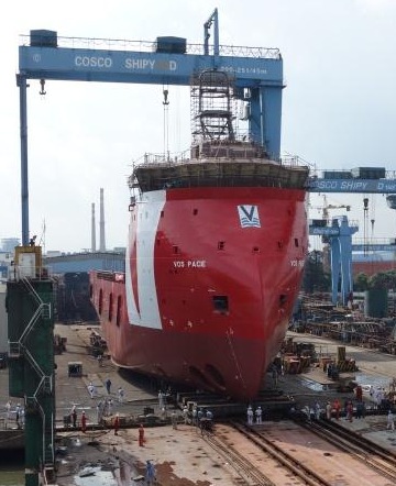 We are pleased to announce that today, Monday 30 June, the launching of VOS Pace took place at COSCO Guangdong Shipyard in China. VOS Pace is a platform-supply vessel (PSV), a cutting-edge Ulstein PX121 design, currently under construction at the shipyard for Vroon Offshore Services.