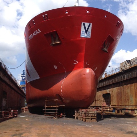 18 August 2014 We are pleased to announce that Vroon’s bitumen tanker, Iver Agile, left Varna, Bulgaria, yesterday evening, 13 August, after completion of an extensive drydocking. During her drydocking, the vessel was painted in Vroon livery and renamed from San Matteo. In addition, she successfully passed her second Special Survey. Iver Agile is now underway to Italy to load her next cargo of bitumen. We wish the vessel and crew continued safe and successful operations. Vessel Particulars (PDF)
