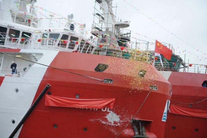 24 November 2014 We are pleased to announce that two of our newbuilding ERRVs, VOS Faithful and VOS Famous, have been named in ceremonies held today, Monday 24 November, at Nanjing East Star Shipyard in China. VOS Faithful was christened by Mrs Monique Haverbeke, Crewing Assistant at Vroon Ship Management B.V., who has worked for Vroon for 37 years. VOS Famous was named by Mrs Hanneke Rikken-Taat, wife of Mr Eric Rikken, Vroon Group Technical Director. These two 50-m ERRVs (emergency response and rescue vessel), currently under construction in Nanjing, are part of a ten-vessel newbuilding programme, with six 50-m ERRVs being built at Nanjing and four 60-m vessels under construction at Fujian Southeast Shipyard, also in China. All these vessels have a revolutionary, wave-piercing bow shape that has been specially designed for Vroon. The first two vessels, VOS Fabulous and VOS Fairness, have already been delivered to the company and are operating out of Aberdeen for Vroon Offshore Services. VOS Faithful and VOS Famous are scheduled for delivery to Vroon in the coming months and will be operational in the North Sea next spring.