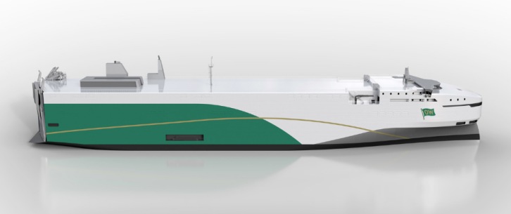 Model of the new LNG ships for the Volkswagen Group's ocean-going fleet. Image by Volkswagen Group. Exclusive long-term agreements have been signed with shipowners Wallenius Marine and SFL Corporation for the use of the four new car carriers on the North Atlantic route. The state-of-the-art ships are being built in China. They each have a capacity of around 7,000 CEU (car equivalent units), which corresponds to between 4,400 and 4,700 vehicles from the Volkswagen Group's model mix. The ships will be powered by 13,300 kW dual-fuel engines from MAN Energy Solutions and, in eco-speed mode, will be able to travel at speeds of 15 to 16 knots (28 to 30 km/h). In contrast to other LNG-powered marine engines, the two-stroke engines from MAN Energy Solutions use a high-pressure technology that results in virtually no methane slip, making the ships chartered by Group Logistics especially climate-friendly. The two LNG ships that came into service in 2020 are also equipped with this climate-friendly technology, which was a key factor in choosing these ships. The use of LNG not only reduces CO2 emissions. It also cuts the emissions of nitrogen oxides by up to 30 percent, soot particles by up to 60 percent and sulfur oxides by as much as up to 100 percent. The liquid gas-powered car carriers require no modification to be able to run on alternative non-fossil fuels such as biogas, e-gas from renewable sources and biodiesel. It will also be possible to retrofit two of the new ships with battery cells to achieve further reductions in fuel consumption. All four LNG ships will have shore power connections which means they can eliminate all local emissions in ports providing this facility. Each year, Volkswagen Group Logistics organizes some 7,700 ship departures worldwide. As well as utilizing capacities on hundreds of scheduled cargo vessels, eleven car carriers operate exclusively for Volkswagen. In the future, six of them will be powered by LNG. Two of the eleven charter vessels on the European coastal routes are powered by biofuel. Each year, the Volkswagen Group ships 2.8 million new cars. Volkswagen Group - press release