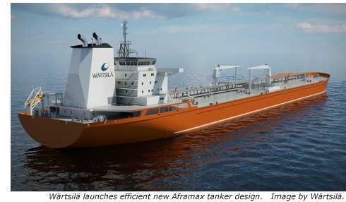 For emissions compliance, an integrated Wärtsilä exhaust gas scrubber has been placed on the funnel. Main engine, auxiliary engines and auxiliary boilers are all connected to the integrated scrubber. The scrubber effectively reduces sulphur oxide (SOx) emissions, and meets the 0.1 percent sulphur limit even with HFO (Heavy Fuel Oil) having a sulphur content of 3.5 per cent. A Wärtsilä SCR (Selective Catalytic Reduction) system has been placed before the turbocharger turbine for the main engine. The SCR is a post combustion nitrogen oxides (NOx) abatement system that permits optimised combustion, in terms of efficiency, while reducing NOx emissions by more than 90 per cent. The abatement equipment is tuned with the main and auxiliary engines for effective operations across the complete load range and IMO Tier III requirements can be fulfilled. “The new realities of the shipping industry call for higher fuel efficiency, lower operating costs, and better environmental performance. The new Wärtsilä Aframax tanker design meets all these criteria, and we are proud to offer this segment the combination of state-of-the-art design and superb propulsion machinery that can produce meaningful savings,” says Riku-Pekka Hägg, Vice President Wärtsilä Ship Design. Wärtsilä X62 engine The Wärtsilä X62 is the most compact engine in its class of very low-shaft-speed engines. Thanks to the engine’s agility, it is the optimum choice for several vessel segments. The Wärtsilä X62 has a cylinder bore of 620 mm and its power output is in the 8,000 to 21,280 kW range. It comes in 4 to 8 cylinder configurations. Aframax tanker: Length over all, approx 253.20 m Beam 44m Max draught 15.2 m Carrying capacity abt. 117,000t dwt Net cargo abt. 134,250m3 in 12 cargo tanks Loading/discharge rate at the manifold 9000m3/hr Bow loading system 8000m3/hrs Wärtsilä Corporation, press release |
